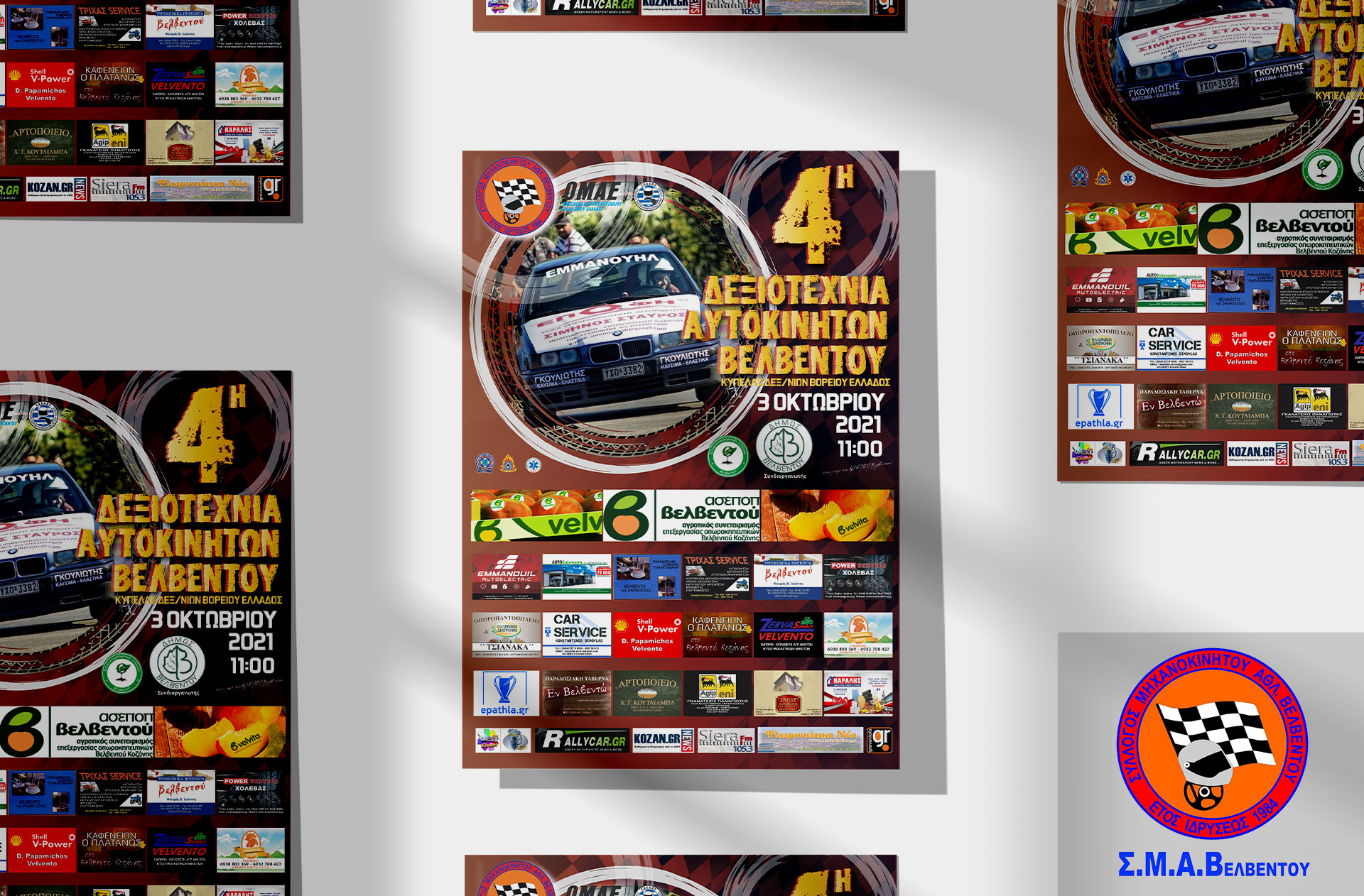 Ο Σ.Μ.Α.Β είναι σύλλογος Μηχανοκίνητου Αθλητισμού και βρίσκεται στο Βελβεντό Κοζανής.Μας ζητήθηκε να αναλάβουμε τη δημιουργία αφίσας για την εκδήλωση τέταρτης δεξιοτεχνίας αυτοκινήτων στο Βελβεντό Κοζάνης.